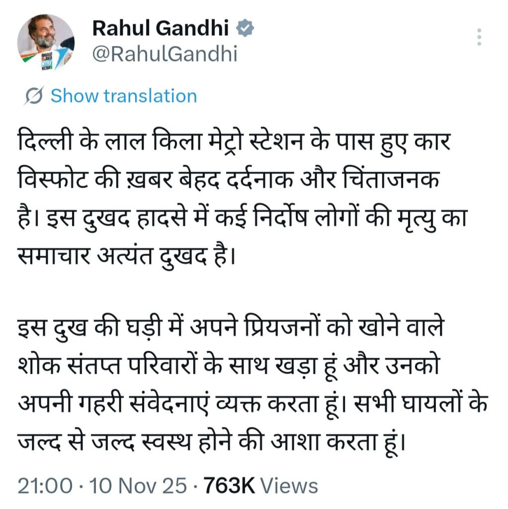 A high intensity blast took place at a traffic signal on Netaji Subhash Marg near gate number 1 of the Red Fort metro station in central Delhi, at around 1852 hrs on 10 November 2025.